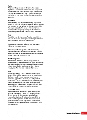 \u0020\u0020\u0020\u0020\u0020\u0020\u0020\u0020\u0020\u0050\u006F\u006C\u0069\u0063\u0079\u000A\u0041\u006E\u0020\u006F\u0076\u0065\u0072\u002D\u0061\u0072\u0063\u0068\u0069\u006E\u0067\u0020\u006D\u0061\u006E\u0064\u0061\u0074\u006F\u0072\u0079\u0020\u0064\u0069\u0072\u0065\u0063\u0074\u0069\u0076\u0065\u002E\u0020\u0050\u006F\u006C\u0069\u0063\u0069\u0065\u0073\u0020\u0061\u0072\u0065\u0020\u0068\u0069\u0067\u0068\u002D\u006C\u0065\u0076\u0065\u006C\u0020\u0072\u0075\u006C\u0065\u0073\u0020\u0077\u0068\u0065\u0072\u0065\u0020\u0072\u0065\u0067\u0075\u006C\u0061\u0072\u0020\u0063\u006F\u006D\u0070\u006C\u0069\u0061\u006E\u0063\u0065\u0020\u0069\u0073\u0020\u0065\u0078\u0070\u0065\u0063\u0074\u0065\u0064\u002E\u0020\u0046\u006F\u0072\u0020\u0065\u0078\u0061\u006D\u0070\u006C\u0065\u002C\u0020\u0061\u006E\u0020\u006F\u0075\u0074\u0064\u006F\u006F\u0072\u0020\u0070\u0072\u006F\u0067\u0072\u0061\u006D\u0020\u006D\u0069\u0067\u0068\u0074\u0020\u0068\u0061\u0076\u0065\u0020\u0061\u0020\u0070\u006F\u006C\u0069\u0063\u0079\u0020\u0074\u0068\u0061\u0074\u0020\u0070\u0072\u006F\u0068\u0069\u0062\u0069\u0074\u0073\u0020\u006F\u0070\u0065\u0072\u0061\u0074\u0069\u006E\u0067\u0020\u0061\u0020\u006D\u006F\u0074\u006F\u0072\u0020\u0076\u0065\u0068\u0069\u0063\u006C\u0065\u0020\u0077\u0068\u0069\u006C\u0065\u0020\u0075\u006E\u0064\u0065\u0072\u0020\u0074\u0068\u0065\u0020\u0069\u006E\u0066\u006C\u0075\u0065\u006E\u0063\u0065\u0020\u006F\u0066\u0020\u0064\u0072\u0075\u0067\u0073\u0020\u006F\u0072\u0020\u0061\u006C\u0063\u006F\u0068\u006F\u006C\u002E\u0020\u0053\u0065\u0065\u0020\u0061\u006C\u0073\u006F\u003A\u0020\u0070\u0072\u006F\u0063\u0065\u0064\u0075\u0072\u0065\u002C\u0020\u0067\u0075\u0069\u0064\u0065\u006C\u0069\u006E\u0065\u002E\u000A\u0050\u0072\u006F\u0063\u0065\u0064\u0075\u0072\u0065\u000A\u0041\u006E\u0020\u0065\u0073\u0074\u0061\u0062\u006C\u0069\u0073\u0068\u0065\u0064\u0020\u0077\u0061\u0079\u0020\u006F\u0066\u0020\u0064\u006F\u0069\u006E\u0067\u0020\u0073\u006F\u006D\u0065\u0074\u0068\u0069\u006E\u0067\u002E\u0020\u0050\u0072\u006F\u0063\u0065\u0064\u0075\u0072\u0065\u0073\u0020\u0073\u0068\u006F\u0075\u006C\u0064\u0020\u0062\u0065\u0020\u0066\u006F\u006C\u006C\u006F\u0077\u0065\u0064\u002C\u0020\u0075\u006E\u006C\u0065\u0073\u0073\u0020\u0069\u0074\u0020\u0069\u0073\u0020\u0065\u0076\u0069\u0064\u0065\u006E\u0074\u006C\u0079\u0020\u0073\u0061\u0066\u0065\u0072\u0020\u006F\u0072\u0020\u0073\u0075\u0070\u0065\u0072\u0069\u006F\u0072\u0020\u006E\u006F\u0074\u0020\u0074\u006F\u0020\u0064\u006F\u0020\u0073\u006F\u002E\u0020\u0046\u006F\u0072\u0020\u0065\u0078\u0061\u006D\u0070\u006C\u0065\u002C\u0020\u0061\u006E\u0020\u006F\u0075\u0074\u0064\u006F\u006F\u0072\u0020\u0070\u0072\u006F\u0067\u0072\u0061\u006D\u0020\u006D\u0069\u0067\u0068\u0074\u0020\u0068\u0061\u0076\u0065\u0020\u0061\u0020\u0070\u0072\u006F\u0063\u0065\u0064\u0075\u0072\u0065\u0020\u0074\u0068\u0061\u0074\u0020\u0072\u0065\u0071\u0075\u0069\u0072\u0065\u0073\u0020\u0061\u0020\u006D\u0069\u006E\u0069\u006D\u0075\u006D\u0020\u006F\u0066\u0020\u0074\u0077\u006F\u0020\u0061\u0063\u0074\u0069\u0076\u0069\u0074\u0079\u0020\u006C\u0065\u0061\u0064\u0065\u0072\u0073\u0020\u0070\u0065\u0072\u0020\u0067\u0072\u006F\u0075\u0070\u0020\u0064\u0075\u0072\u0069\u006E\u0067\u0020\u0072\u0065\u006D\u006F\u0074\u0065\u0020\u0077\u0069\u006C\u0064\u0065\u0072\u006E\u0065\u0073\u0073\u0020\u0062\u0061\u0063\u006B\u0070\u0061\u0063\u006B\u0069\u006E\u0067\u0020\u0065\u0078\u0070\u0065\u0064\u0069\u0074\u0069\u006F\u006E\u0073\u002E\u0020\u0053\u0065\u0065\u0020\u0061\u006C\u0073\u006F\u003A\u0020\u0070\u006F\u006C\u0069\u0063\u0079\u002C\u0020\u0067\u0075\u0069\u0064\u0065\u006C\u0069\u006E\u0065\u002E\u000A\u0052\u0069\u0073\u006B\u000A\u0050\u006F\u0073\u0073\u0069\u0062\u0069\u006C\u0069\u0074\u0079\u0020\u006F\u0066\u0020\u0075\u006E\u0064\u0065\u0073\u0069\u0072\u0061\u0062\u006C\u0065\u0020\u006C\u006F\u0073\u0073\u002E\u0020\u0041\u006C\u0073\u006F\u002C\u0020\u0074\u0068\u0065\u0020\u0070\u0072\u006F\u0062\u0061\u0062\u0069\u006C\u0069\u0074\u0079\u0020\u006F\u0066\u0020\u006C\u006F\u0073\u0073\u0020\u0063\u006F\u006D\u0062\u0069\u006E\u0065\u0064\u0020\u0077\u0069\u0074\u0068\u0020\u0074\u0068\u0065\u0020\u006D\u0061\u0067\u006E\u0069\u0074\u0075\u0064\u0065\u0020\u006F\u0066\u0020\u0074\u0068\u0065\u0020\u0070\u006F\u0074\u0065\u006E\u0074\u0069\u0061\u006C\u0020\u006C\u006F\u0073\u0073\u002E\u0020\u0052\u0069\u0073\u006B\u0020\u0063\u006F\u006D\u0065\u0073\u0020\u0066\u0072\u006F\u006D\u0020\u0069\u006E\u0074\u0065\u0072\u0061\u0063\u0074\u0069\u006F\u006E\u0020\u0077\u0069\u0074\u0068\u0020\u0061\u0020\u0068\u0061\u007A\u0061\u0072\u0064\u002E\u000A\u0041\u0020\u0073\u0074\u0065\u0065\u0070\u0020\u0073\u006C\u006F\u0070\u0065\u0020\u0063\u006F\u006D\u0070\u006F\u0073\u0065\u0064\u0020\u006F\u0066\u0020\u006C\u006F\u006F\u0073\u0065\u0020\u0072\u006F\u0063\u006B\u0073\u0020\u0069\u0073\u0020\u0061\u0020\u0068\u0061\u007A\u0061\u0072\u0064\u002E\u0020\u0048\u0069\u006B\u0069\u006E\u0067\u0020\u006F\u006E\u0020\u0074\u0068\u0061\u0074\u0020\u0073\u006C\u006F\u0070\u0065\u0020\u0069\u0073\u0020\u0061\u0020\u0072\u0069\u0073\u006B\u002E\u000A\u0041\u006E\u0020\u0061\u0063\u0074\u0069\u0076\u0069\u0074\u0079\u0020\u006C\u0065\u0061\u0064\u0065\u0072\u0020\u006E\u006F\u0074\u0020\u0071\u0075\u0061\u006C\u0069\u0066\u0069\u0065\u0064\u0020\u0074\u006F\u0020\u006C\u0065\u0061\u0064\u0020\u0061\u006E\u0020\u0061\u0063\u0074\u0069\u0076\u0069\u0074\u0079\u0020\u0072\u0065\u0070\u0072\u0065\u0073\u0065\u006E\u0074\u0073\u0020\u0061\u0020\u0073\u006F\u0075\u0072\u0063\u0065\u0020\u006F\u0066\u0020\u0070\u006F\u0074\u0065\u006E\u0074\u0069\u0061\u006C\u0020\u006C\u006F\u0073\u0073\u0020\u0028\u0068\u0061\u007A\u0061\u0072\u0064\u0029\u002E\u0020\u0050\u006C\u0061\u0063\u0069\u006E\u0067\u0020\u0061\u006E\u0020\u0069\u006E\u0065\u0078\u0070\u0065\u0072\u0069\u0065\u006E\u0063\u0065\u0064\u0020\u006F\u0072\u0020\u0069\u006D\u0070\u0072\u006F\u0070